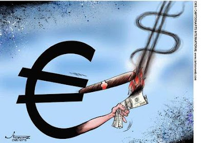 2. Right, at 1.36 Dollar per Euro the Euro is toast. The old caricature was nonsense, the new one is nonsense.
